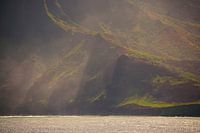 Prachtige groene tinten als de bergen worden geraakt door zonnestralen aan de Nā Pali kust op het eiland Kaua'i in Hawai'i, VS.