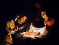 Koop Gerard van Honthorst: Aanbidding van het Kind als reproductie geprint op canvas, aluminium dibond, (ingelijste) fotoprint, behang en ArtFrame. Voor jou op maat geprint in Fine-Art kwaliteit.