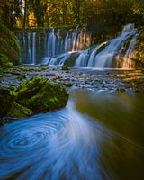 Een verticale 4:5 foto van de Geratser waterval, een opvallende waterval van de Kranzegger Bach. Het ligt ten zuiden van Kempten en ten noorden van Sonthofen in het plaatsje Gerats in de gemeente Rettenberg in de Allgäu, in de deelstaat Beieren in het zuiden van Duitsland.