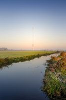 IJsselsteins trots! De Gerbrandytoren, de hoogste zendmast van Nederland, 372 meter hoog, staand op een klein weiland in het ochtendlicht op een windstille dag.