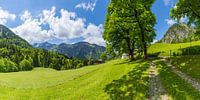 Gerstruben, een voormalig bergdorp in het Dietersbachtal bij Oberstdorf, achter de Himmelschrofen, 1791 m, Allgäuer Alpen, Allgäu, Beieren, Duitsland, Europa.