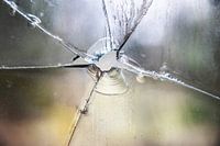 Verbrijzeld glas na een kogelinslag