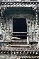 Deze prachtige gevel in de oude stad van Ahmedabad, India, vertelt een verhaal van vergane pracht en architectonische traditie. Het fijn gesneden houtwerk heeft ondanks de slijtage van de tijd een tijdloze elegantie behouden. De halfopen ramen en luiken voegen een mysterieuze sfeer toe en geven een idee van het leven dat hier ooit leefde.