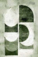 Een compositie van geometrische vormen.Met de groene variant ontstaat een levendig maar geaard beeld dat uitnodigt tot verstilling.