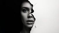 Dit indringende kunstwerk toont een half gezicht dat tevoorschijn komt door gescheurd papier, waarbij een fel blauw oog het enige kleuraccent vormt in een verder zwart-witte compositie. Juist deze combinatie van monochroom met een krachtig kleuraccent maakt het beeld bijzonder expressief en symbolisch. Het oog staat niet alleen voor…