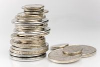 Gestapelde oude Europese muntstukken van voor de introductie van de Euro