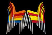 Gestapelde stoelen van een lunchroom. Ook in zwart-wit beschikbaar.