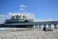 De dag doorgebracht in Daytona Beach, Florida. Het was maar een uurtje rijden van Orlando en het is heerlijk om langs het strand te lopen, te genieten van de oceaan en te eten op de pier. Dit meisje op het strand had hetzelfde idee en nam haar fiets mee het strand op.