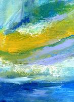 Het schilderen, Zacht, Licht, Eigentijds, Modern, Decoratief, Abstract, Inrichting, Sfeer, Landschapsillusion, Atmosferisch, Fris, Opwindend, Gelukkig, Beweging, Kleurrijk, Intuïtief, Spontaan, Acryl, Moderne Kunst, Geel, Blauw, Wit