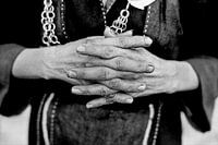 Deze prachtige handen, sterk getekend door arbeid, zijn de handen van een vrouw die behoort tot de etnische minderheid Black Hmong.
