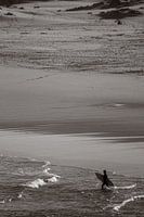De grens tussen land en water, gevangen in tijdloos zwart-wit. Deze foto toont de eenzaamheid en de kracht van de oceaan in zijn puurste vorm. Een krachtig statement voor een minimalistisch interieur waar textuur en contrast de hoofdrol spelen.