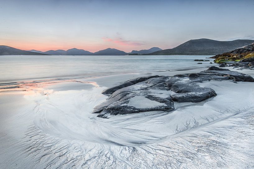 De foto maakte ik Lewis een eiland van de buitenst Hebriden in Schotland. Wat een prachtige kusten daar! Het weer zat ook mee dus gaf mij goed de gelegenheid de tijd te nemen voor fotografie. Ik vond juist deze plek zo mooi vanwege de mooie structuur in het zand die in en bocht op de rots heen stroomt. Een plaatje om in weg te dromen vind ik en ik haat daar gezeten tot het donker was, het was betoverend.