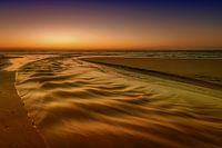 Het strand loopt leeg bij laag water , hier en daar blijft nog een plas staan tussen de wadden maar uiteindelijk vind het watertoch zijn weg terug naar zee