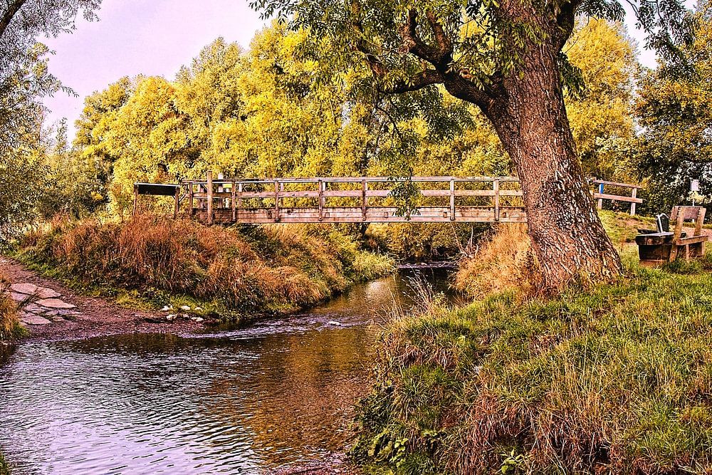 Rivier de Geul bij de grensovergang van België naar Nederland in Cottessen (Heuvelland).