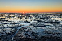 Het getij is goed, de geulen zijn mooi zichtbaar. De zon gaat bijna onder dus de kleuren van de schemering vallen over het Friese Wad. Voor me loopt een wat bredere geul, die me het plaatje in trekt, onderweg naar de zonsondergang. Heerlijk om aan de kust van de Waddenzee te zijn, het is een bron van inspiratie. De Waddenzee is ook populair door het wadlopen.