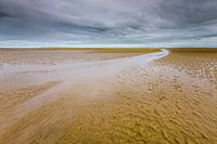 Hier is de verstildheid van de Waddenzee te zien. Geulen, patronen en daarboven de wolken, dat is het Wad met de getijden van eb en vloed. Eindeloze ruimte om tot rust te komen.