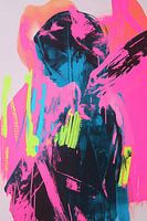 Deze wilde street art in neon graffiti stijl laat een gevallen engel zien. Maar engel blijft engel - zo mooi. Als je houdt van de opvallende neonkleuren roze, geel en blauw, dan is dit ongewone, dynamische en spontane decoratieve schilderij echt iets voor jou.