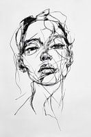 Dynamische lijnen verweven in een boeiende gezichtsuitdrukking stralen expressie en emotie uit. De intense blik en de delicate, chaotische structuren geven de compositie een fascinerende diepte. Overgoten met delicate contouren wordt een gevoel van kwetsbaarheid en kracht gecreëerd dat de kijker onmiddellijk betovert.