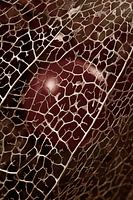 "Gevangen in een "kooi": Oranje bes in een lampionnetje (Physalis)" is een macrofoto van een oranje bes van de Lampionplant (Physalis). Deze oranje bes zit nog in het lampionnetje, die bijna verteerd is, je ziet bijna alleen nog maar de nervenstructuur. Doordat er gekozen is voor een geringe scherptediepte en de focus licht op de nervenstructuur, gelegen voor de oranje bes, lijkt het net of de bes gevangen zit achter deze structuur. De scherpte neemt vanaf dit punt af, hierdoor ontstaat er diepte in het werk.