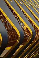 Voetgangerspassage in Antwerpen. Het prachtige, fotogenieke lijnenspel werpt mooie schaduwen in de passage. Het geel en blauw geven een mooi contrast.