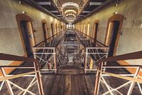 De bovenste etage van een gevangenis. Door het terugkerende patroon van cellen geeft dit een erg mooi beeld. Veel lijnen en symmetrie.