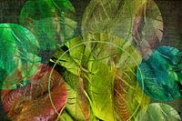 Digitale kunst. Deze cirkels zijn gevuld met veren, opgebouwd uit vele lagen. De zachtheid van het dons, in trendy kleuren. Een blikvanger in het interieur.