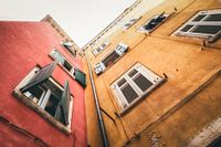Zonnige vakantiebestemmingen staan bekend om de kleurrijke huisjes en appartementen. Zo ook dit leuke appartementencomplex in talie waar de kleuren rood en geel mooi oplichten.