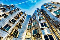 Metalen gevel Gehry-gebouw in Düsseldorf's Media Harbour aan de Rijn Duitsland als HDR
