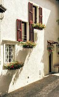 Charmante gevel van oude historische woning in straat in Limone sul garda, Italië.
