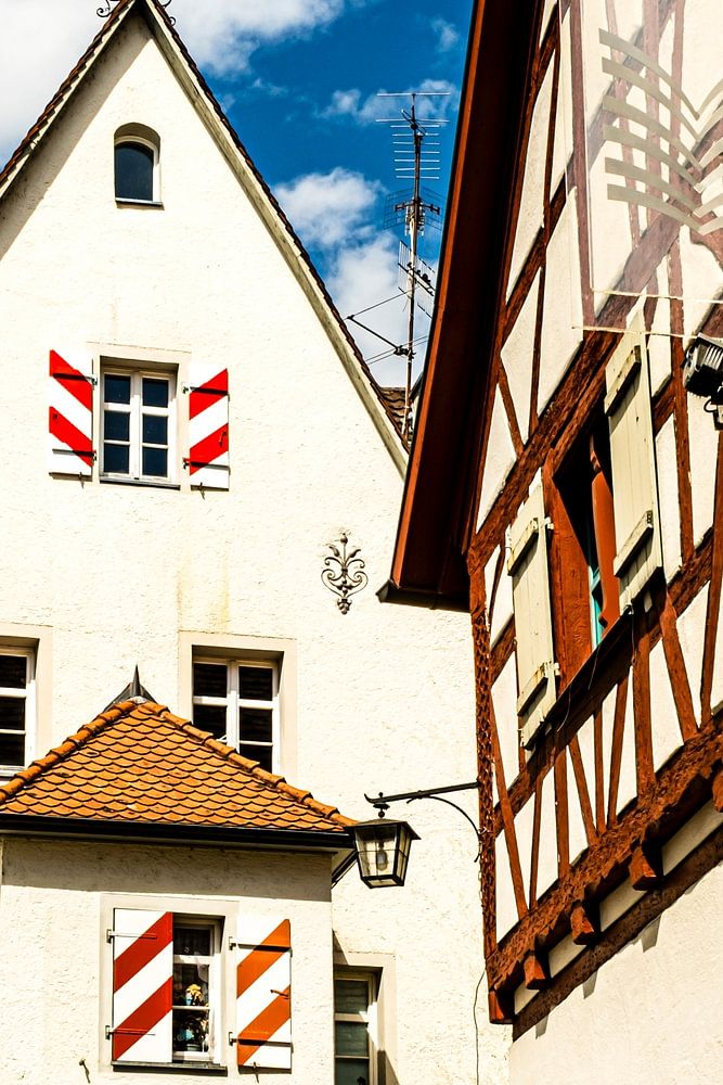 Gevel van vakwerkhuizen in het oude stadscentrum van Überlingen aan het Bodenmeer in Duitsland