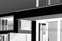 Abstract negatief beeld van boeiboord en raampartij in de gevel van moderne huizen in de Maastrichtse wijk Amby.