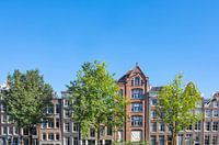 Traditionele oude gevels op grachtenpanden langs de grachten in Amsterdam, hoofdstad van Nederland. De oude koopmanshuizen staan in de grachtengordel in het stadscentrum en zijn vaak gebouwd in de Gouden Eeuw.