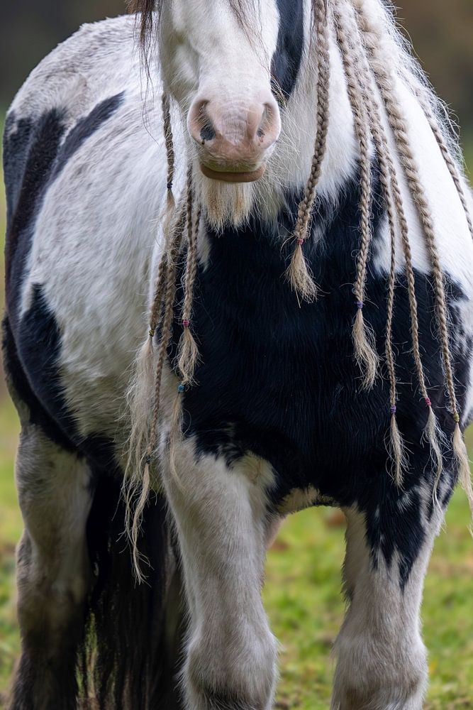 Dit werk toont een Paint paard met lange vlechten in de manen.