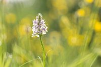 Een gevlekte orchis tussen de boterbloemen op een zonnige zomerochtend in het Heuvelland