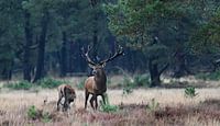 Op een regenachtige ochtend heb ik dit stel op de foto kunnen zetten bij de wildbaan op de Hoge Veluwe. Hij staat op de uitkijk terwijl zij ongestoord kan grazen.