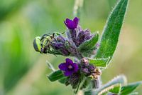 Deze Gewone Ossentong is niet zomaar een bloemetje. Als je goed kijkt, zie je dat het tevens een plaats is, die uitnodigt tot paringsdrift, zoals de twee kevers aan de linkerkant van de bloem laten zien. Helaas kan ik de kevers geen naam geven, omdat ze met de rug naar me toe zitten.