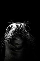 Een fascinerend portret dat de nieuwsgierige blik van een zeehond vastlegt. De kunstzinnige zwart-witafbeelding versterkt de expressiviteit en voegt een speels accent toe aan elke kamer. Ideaal voor het verfraaien van een woonkamer of creatief kantoor, het trekt de aandacht en creëert een gespreksonderwerp.