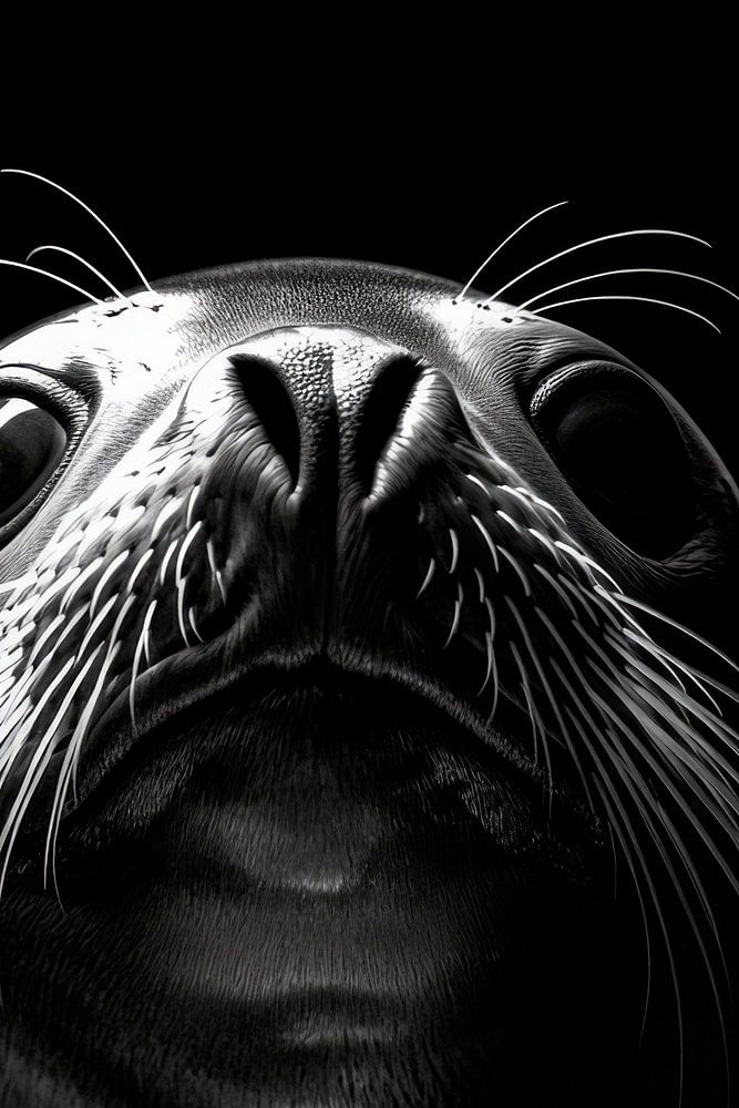 Een fascinerend portret dat de nieuwsgierige blik van een zeehond vastlegt. De kunstzinnige zwart-witafbeelding versterkt de expressiviteit en voegt een speels accent toe aan elke kamer. Ideaal voor het verfraaien van een woonkamer of creatief kantoor, het trekt de aandacht en creëert een gespreksonderwerp.