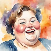 Koop dit schilderij Gezellige Dame met schaterlach van De gezellige Dames als reproductie op canvas, aluminium dibond, (ingelijste) fotoprint, behang en ArtFrame, op maat geprint in Fine-Art kwaliteit.