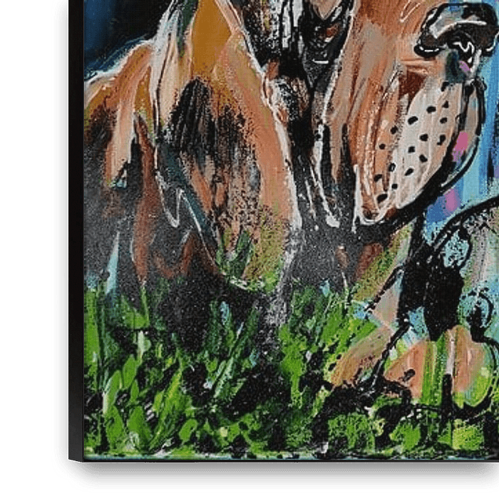 Jouw gekozen kunst als print op doek, gespannen in een aluminium frame. Snel en eenvoudig te verwisselen voor een frisse uitstraling, helemaal zoals jij het wilt.
