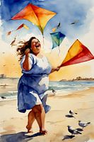 Koop dit vogel kunstwerk Gezellige dame en een vlieger van De gezellige Dames als print op canvas, aluminium dibond, (ingelijste) fotoprint, behang en ArtFrame. Voor jou op maat geprint in Fine-Art kwaliteit.