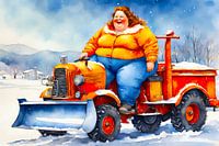 Gezellige dame op de sneeuwschuiver van De gezellige Dames