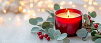 Koop de foto Gezellige kaars met eucalyptustakjes van Poster Art Shop als print op canvas, aluminium dibond, (ingelijste) fotoprint, behang en ArtFrame. Voor jou op maat geprint in Fine-Art kwaliteit.