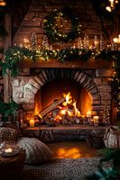 Een gezellige open haard met een knapperend haardvuur en flikkerende kaarsen straalt feestelijke warmte uit. De rustieke steen, versierd met een omkranste sparrentak, creëert een uitnodigende sfeer. Dit beeld, ideaal voor de woonkamer, creëert een harmonieuze gezelligheid en brengt nostalgische winteravonden tot leven. Perfect voor…
