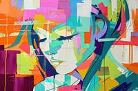 Details: vrouw, abstract, portret, gezicht, modern, kunst, kleurrijk, geometrisch, dynamisch, expressief