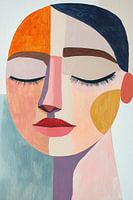 Details: vrouwenportret, abstract, geometrisch, pastelkleuren, moderne kunst, gezicht, geometrische vormen, vrouw, schilderij, kunst