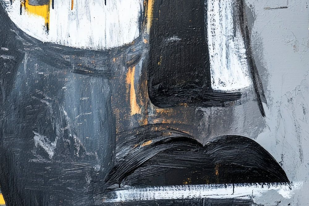 Een expressief gezicht ontvouwt zich hier in krachtige zwarte en gele tinten, die emoties en gedachten weerspiegelen. De gesloten ogen en opvallende lipvorm geven het kunstwerk een mysterieuze uitstraling. Ideaal voor in de woonkamer, creëert het een spannende conversatiestarter en trekt het ieders aandacht.