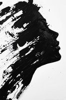 Er ontvouwt zich een krachtige uitdrukking van beweging en emotie, terwijl zwarte kleurstreken harmonieus zijn gegroepeerd rond het silhouet van een gezicht. De dynamische penseelstreken brengen een gevoel van ontvouwing en innerlijke strijd over, waarbij de grenzen tussen vorm en kleur samensmelten in een fascinerend samenspel. Een indrukwekkend beeld van identiteit en transcendentie.