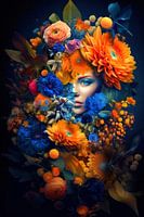 Dit kunstwerk is een visuele viering van kleurrijke bloemenpracht. Het is een samensmelting van bloemen en menselijke gelaatstrekken, waarbij de bloemen als een kader of een omgeving fungeren voor het gezicht. De levendige kleuren, gedetailleerde details en expressieve compositie vangen de schoonheid en diversiteit van bloemen in volle bloei, terwijl het menselijke gezicht een extra dimensie toevoegt aan de kunstwerken.
