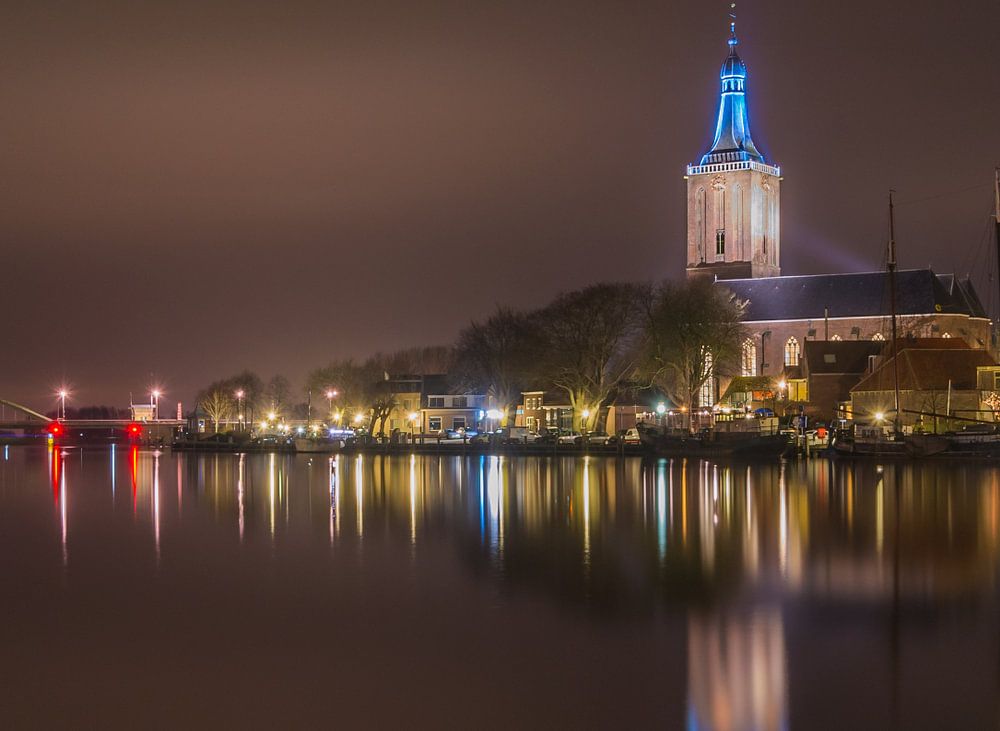 Foto genomen met een zeer lange sluitertijd, het water was enorm glad waardoor het stadsgezicht mooi spiegelt in het water